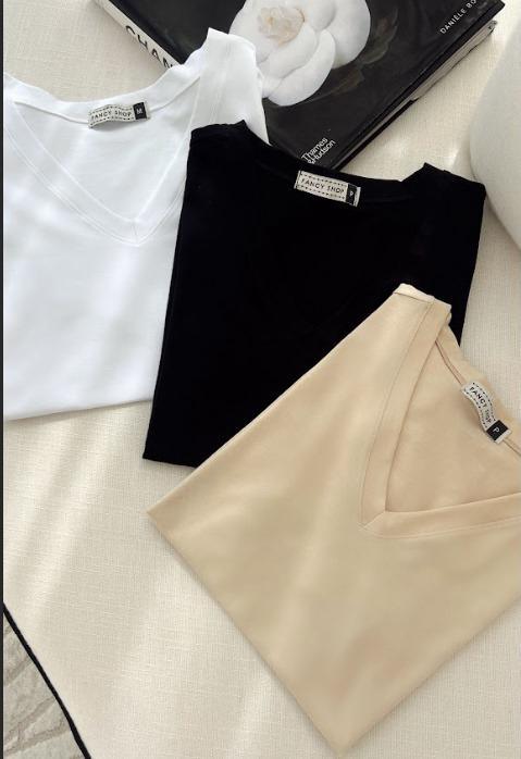 DECOTE EM V, MANGA CURTA.