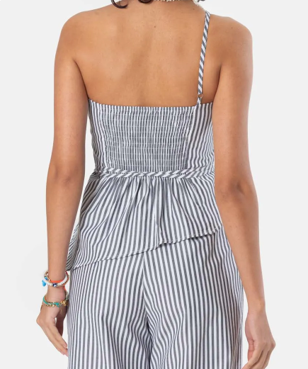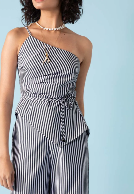 Blusa de um ombro só, alça fina com regulador de altura, lastex nas costas, faixa de amarrar na cintura, tecido de tricoline. É perfeita para criar looks encantadores e estilosos, podendo ser combinada com saias, shorts ou calças de cintura alta.